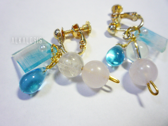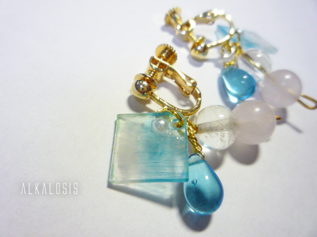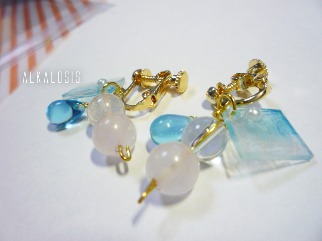 四角いのはプラ板で、表面にパールの石を載せてあります。