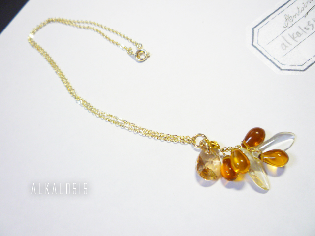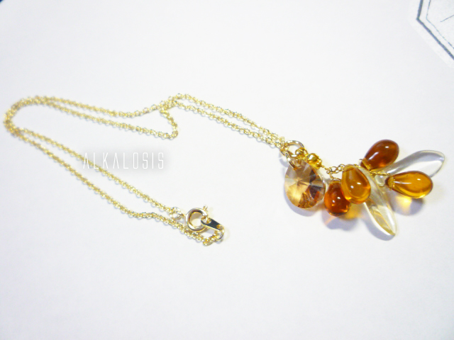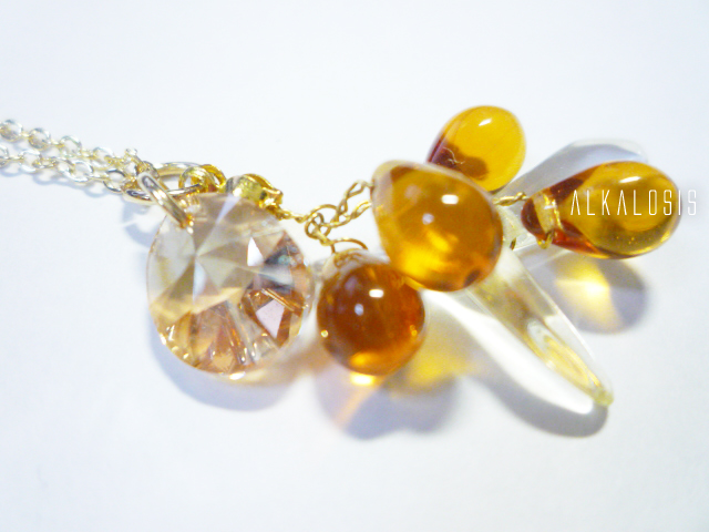 イヤリングとおなじチェコビーズに、こちらはシャンパンカラーのスワロをくっつけてます。