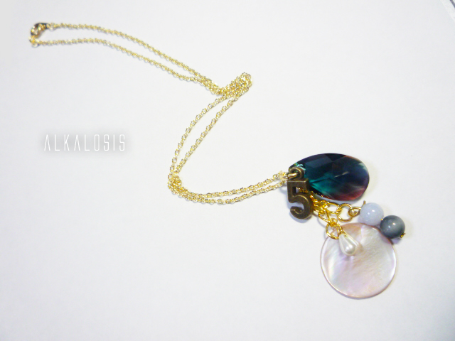 ふたつの石とシェルモチーフは、チェーンでユラユラ揺れるようにデザインしてあります。